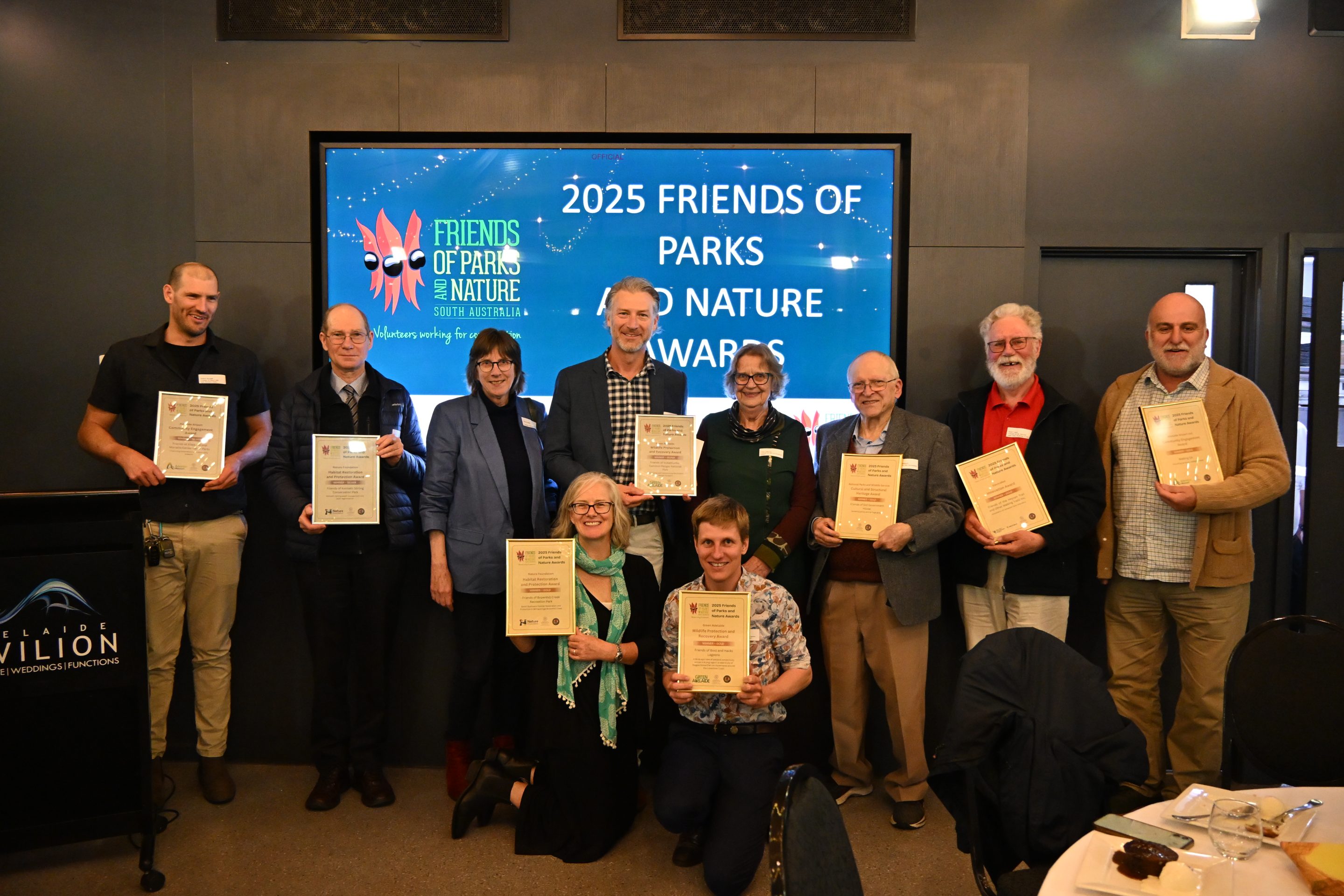 On Saturday 30 August, the Friends of Parks and Nature Inc and National Parks and Wildlife Service SA along with sponsors Nature Foundation, Green Adelaide, ElectraNet and Adelaide Airport gathered to celebrate the incredible contributions of our Friends of Parks and Nature volunteers at the 2025 Awards Dinner at the Adelaide Pavilion. It was a night filled with inspiration and connection as we acknowledged the people and groups who help protect and conserve South Australia’s natural environment.